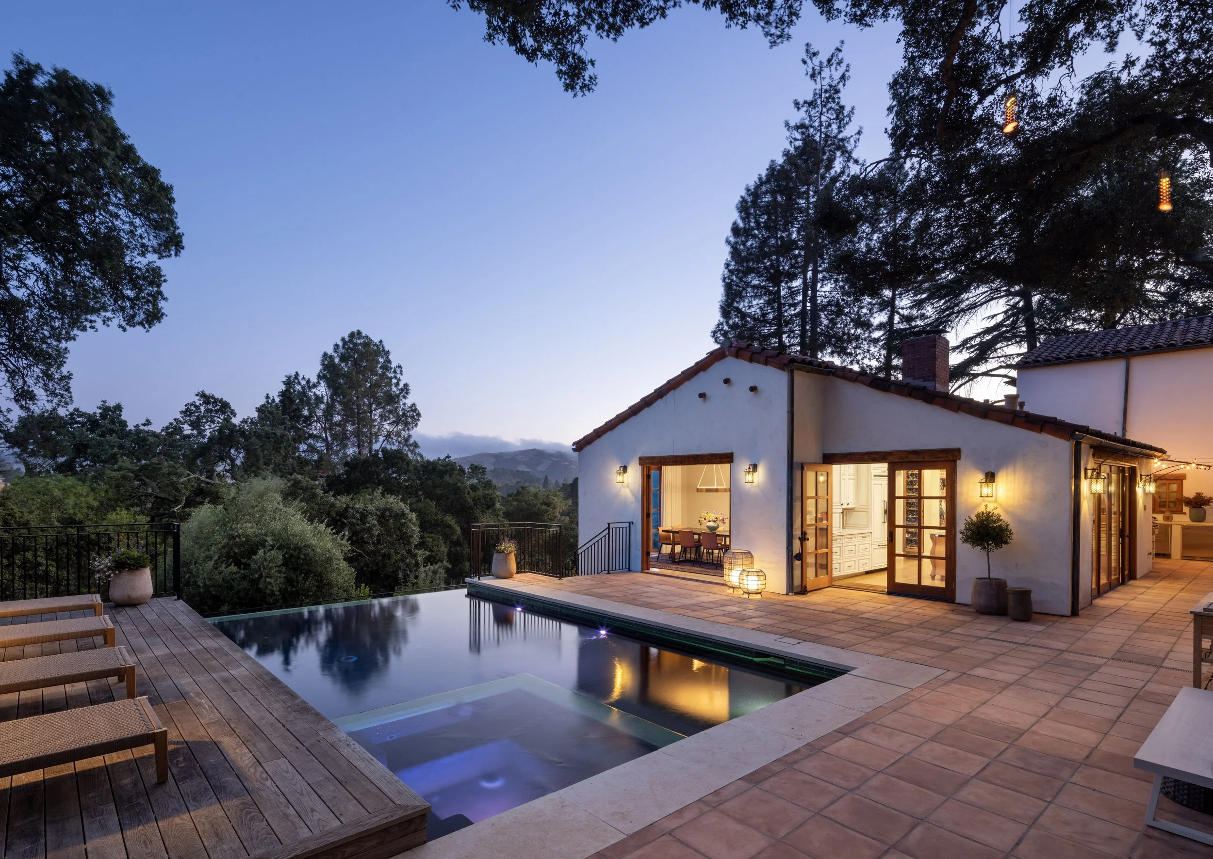 The homeowners bring two distinct styles to the table—the wife’s love of Spanish and Moroccan influences and the husband’s preference for modern simplicity. Drawing from both, and inspired by the oak-studded hillside and luminous California sunsets, I created a warm, neutral, and beautifully textured outdoor environment. The result is a relaxed Hacienda-inspired retreat that seamlessly complements the home’s Spanish architecture and invites effortless outdoor living.